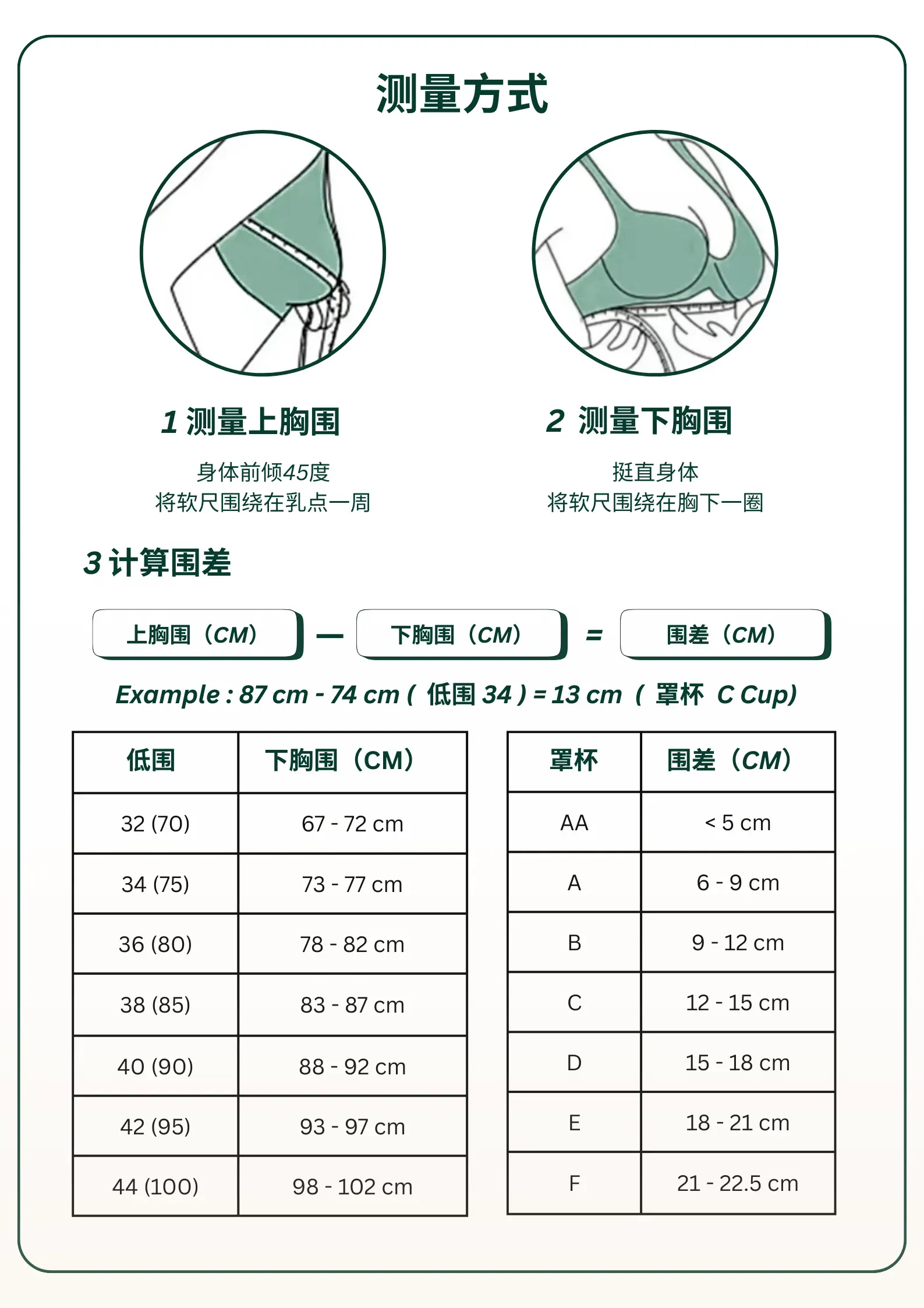 *注意:下单前请测量自己的尺码 上胸围 - 下胸围 = 围差